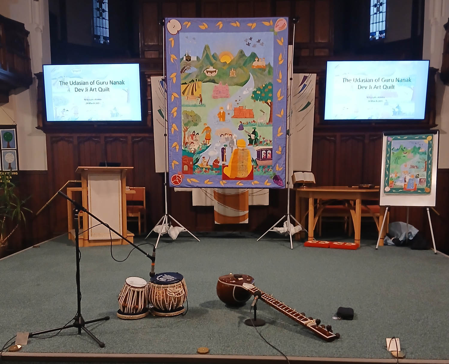 An open evening was held recently at Christchurch, in conjunction with the St. Philip’s Centre, to display a recently produced quilt by the Sikh community in Nottingham illustrating the journeys of Guru Nanak. See the BBC East Midlands news item here.